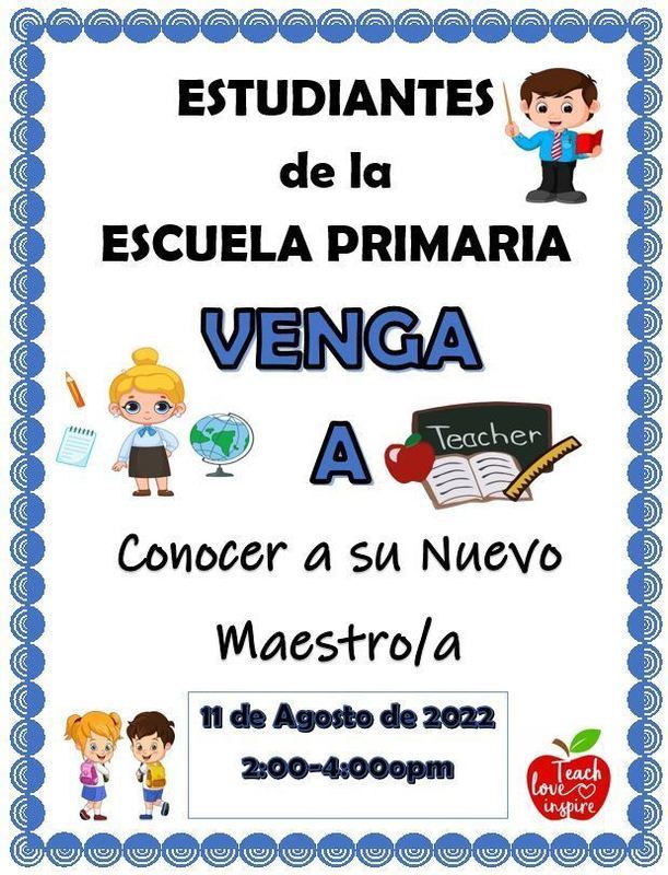 This is Pixley Union School District letting you know that Meet n Greet is Thursday, August 11th from 2:00-4:00 p.m. The First Day of School is Monday, August 15th. Please see the attached flyers for more information. Thank You!